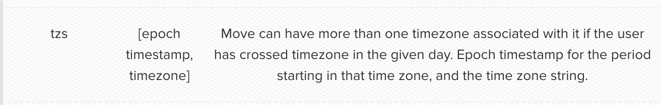 我想澄清一下tzs的Jawbone移动端点:https://jawbone.com/up/developer/endpoints/moves。是否所有响应项都有此密钥?如果没有,那么哪些类型的记录将与那些没有记录的记录相同。此外,文档表明它将是具有以下格式的数组: