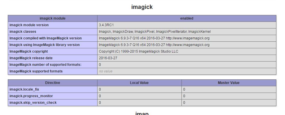 好像Imagick doen没看到IM图书管理员..。您可以尝试php.net:http://php.net/manual/ru/imagick.setup.php#119083的解决方案。