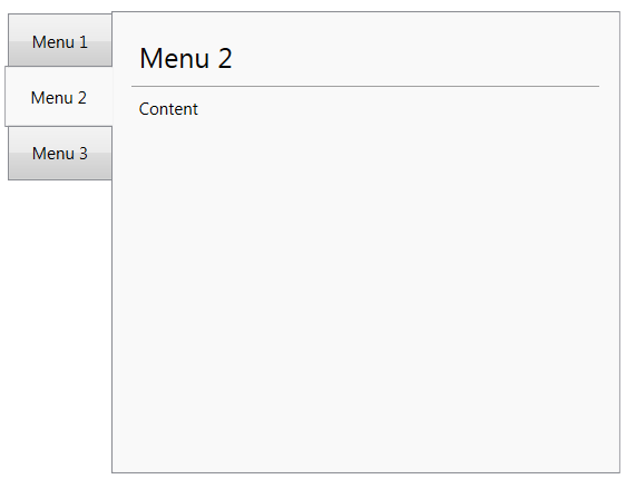 每个选项卡内容都有一个标题(与菜单名称重复)、分隔符和内容。必须与此视图相对应的XAML代码应该如下所示: