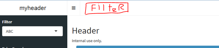 是否可以在dashboardHeader旁边的水平栏中放置一些项目?我知道你可以把notificationItem放在最右边,就像在这个例子一样。但我想使用与dashboardSidebar中相同的选项,比如添加过滤器等。我希望在顶部设置这样一个过滤器: