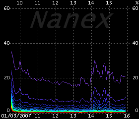 这一比例显示了2007-01 ~ 2012-01年间所有美国股票的NBBO波动。(数值越低意味着更好的NBBO稳定性。更高的价值:不稳定)(提供NANEX )
