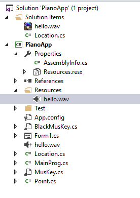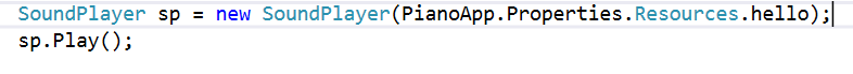 SoundPlayer sp = new SoundPlayer(PianoApp.Properties.Resources.Hello);