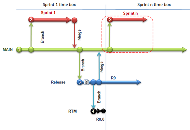 我正在用TFS建立DevOps过程,并且想知道分支策略。如果我有下面的示例分支(来自指导: Scrum团队的分支策略的图像)。