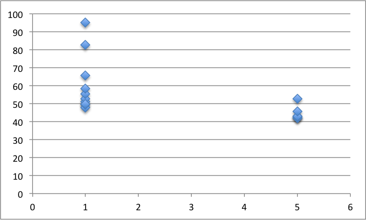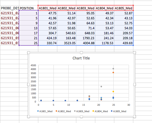 在Excel中比较容易。只需选择position列和其他列,然后单击Insert >散点图