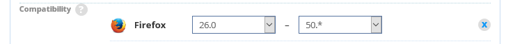 我的问题是:我是否可以在http://addons.mozilla.org/上获得支持特定版本火狐的多个扩展版本?也就是说,我们的扩展版本1支持FF <= 49;版本2支持FF >= 50。
