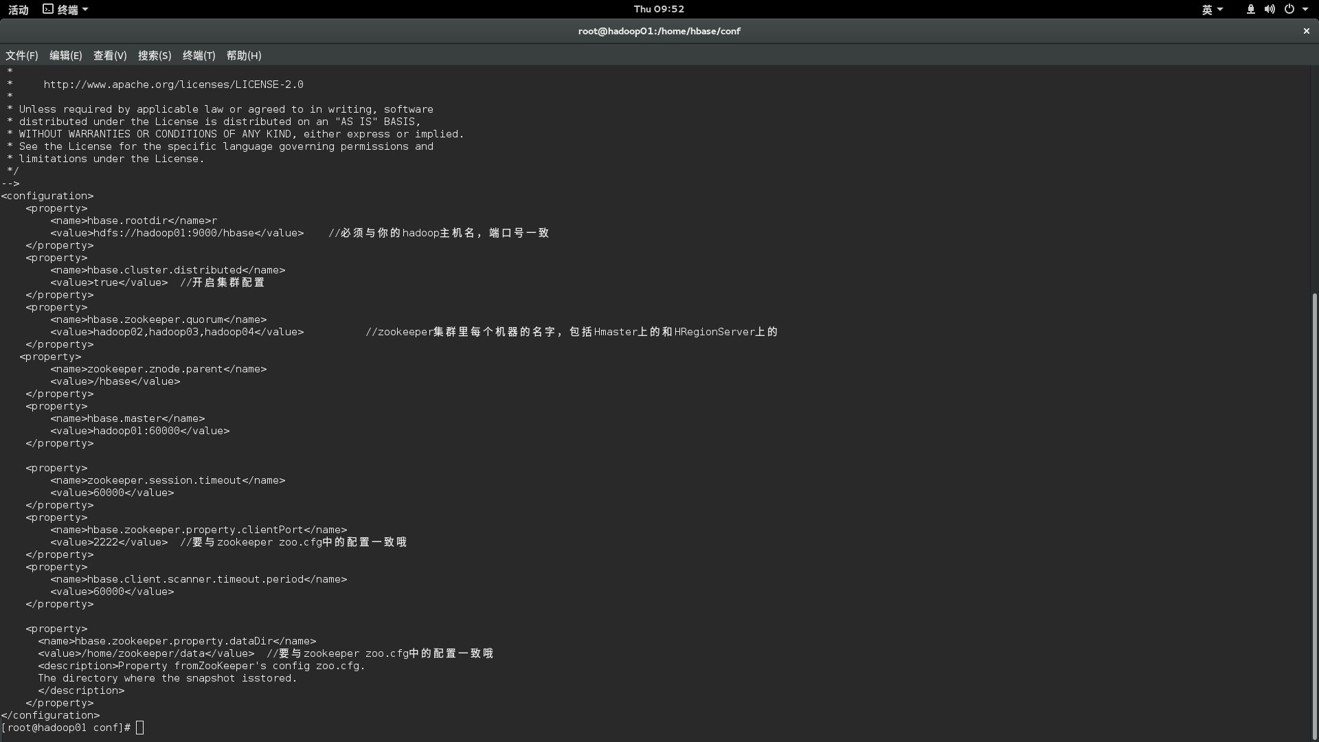 此外,您也可以删除整个动物园管理员的数据,这些数据可能是由hbase-site.xml或zoo.cfg配置的,甚至是默认的dir,您可以检查配置文件。