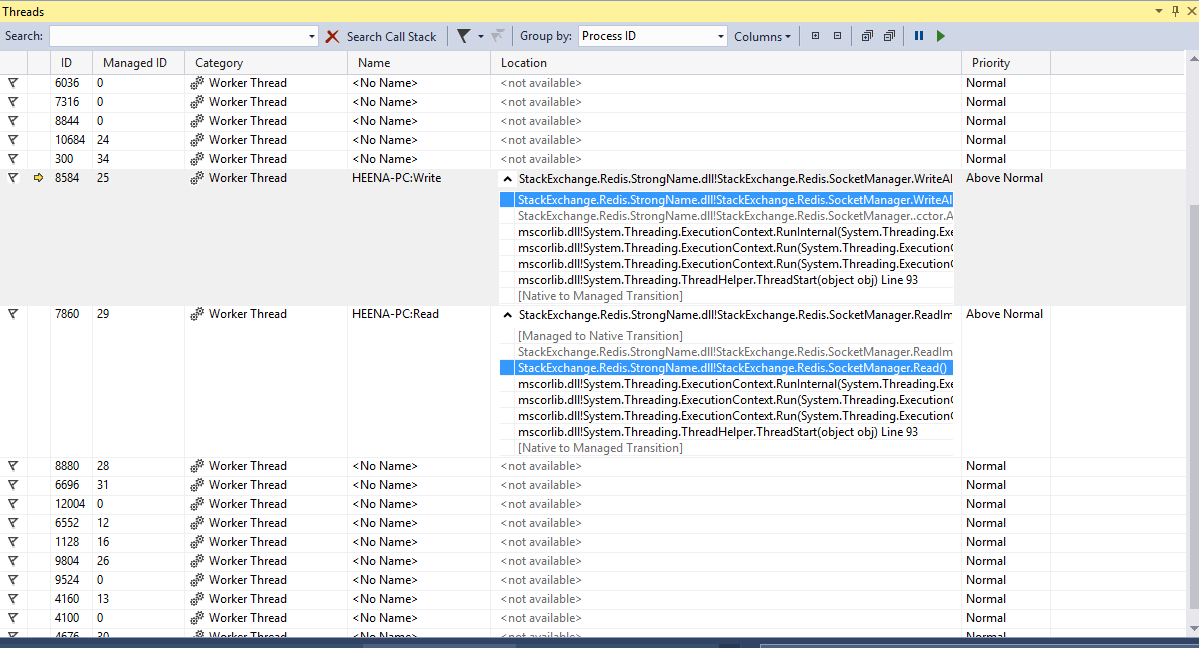 这些是线程由StackExchange.Redis库创建,用于读取和写入连接到Redis的套接字。