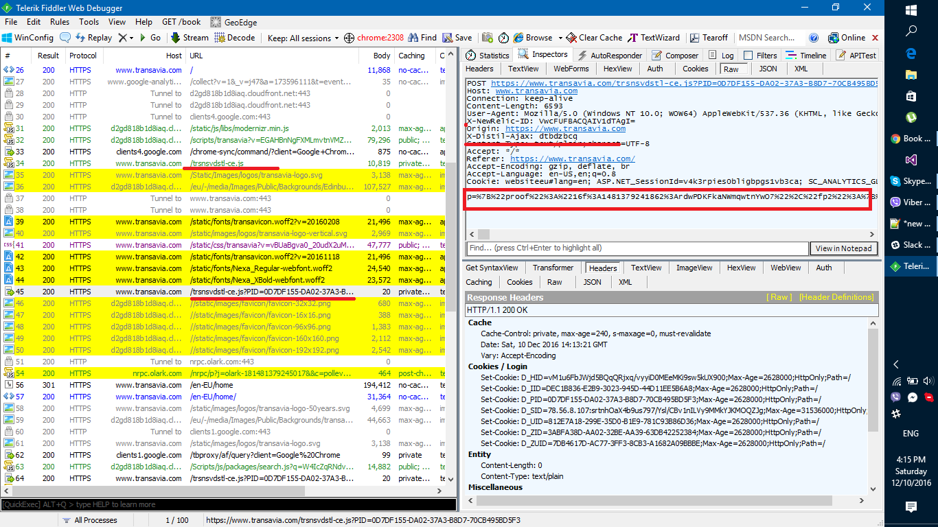 黄色的胶体请求是我得到的东西的一部分,当我在小提琴中搜索“提拔”时。接下来,第一次请求你看到的"/trsnsvdstl-ce.js“如果你要检查源代码,你会罚款的长PID=.还有,你可以看到很多包含D_XXX=的cookie,我认为最重要的是,如果您发出相同的请求,可以看到参数p=,然后是UrlDecode p,您会发现它很有趣,它有很多机器参数,比如浏览器中的工具,分辨率等等。这是指纹..。