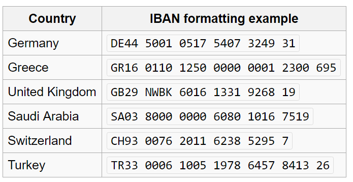 有关IBAN格式的更多信息: