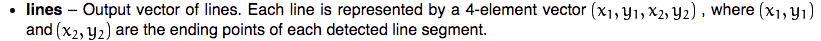 Details我已经建立了一个基于HoughLines输出行的算法,所以我真的不需要段结束点信息。