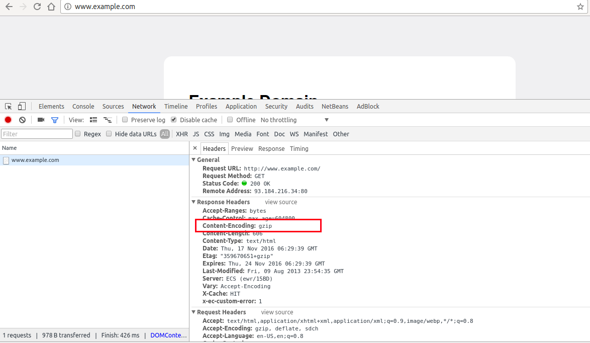 如果启用了gzip,就像下面的屏幕快照一样。(见所附截图)