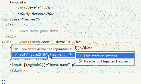 您可以使用Edit Angular2HTML Fragment意图: