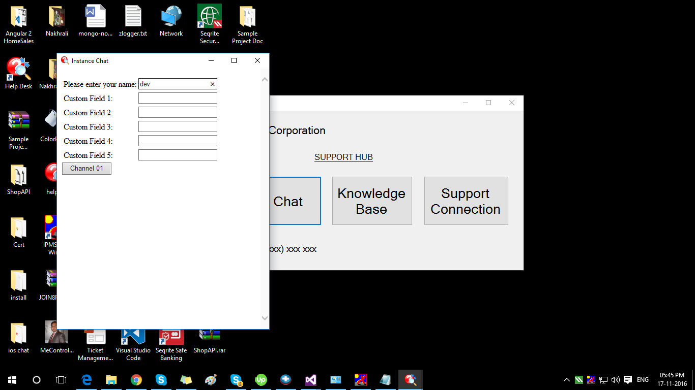 我正在编写windows窗体应用程序,并使用windows窗体应用程序用户能够连接到技术支持技术员,在这种情况下使用能够启动聊天实例。