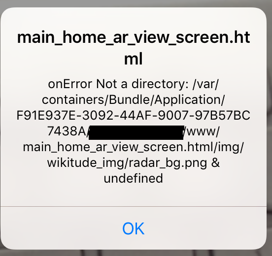 }});当我第一次加载AR世界时,上面的代码工作得很好。但是,在从"/www/main_home_ar_view_screen.html/img/wikitude_img/radar_bg.png",中销毁对象之后,AR.ImageResource在此路径上查找图像,因为在错误的路径上找到图像,因此没有加载图像(参见附加图像)。