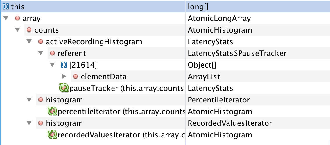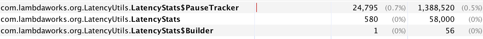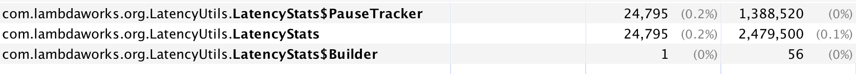 我使用生菜作为我的红宝石客户,它有跟踪功能使用LatencyUtils。它使LatencyStats(包含一些包含近3000个元素的long[] )实例每10分钟弱引用一次(默认情况下,发布后重置延迟为真,https://github.com/mp911de/lettuce/wiki/Command-Latency-Metrics)。因此,经过很长一段时间,它将成为LatencyStats的大量薄弱参考。