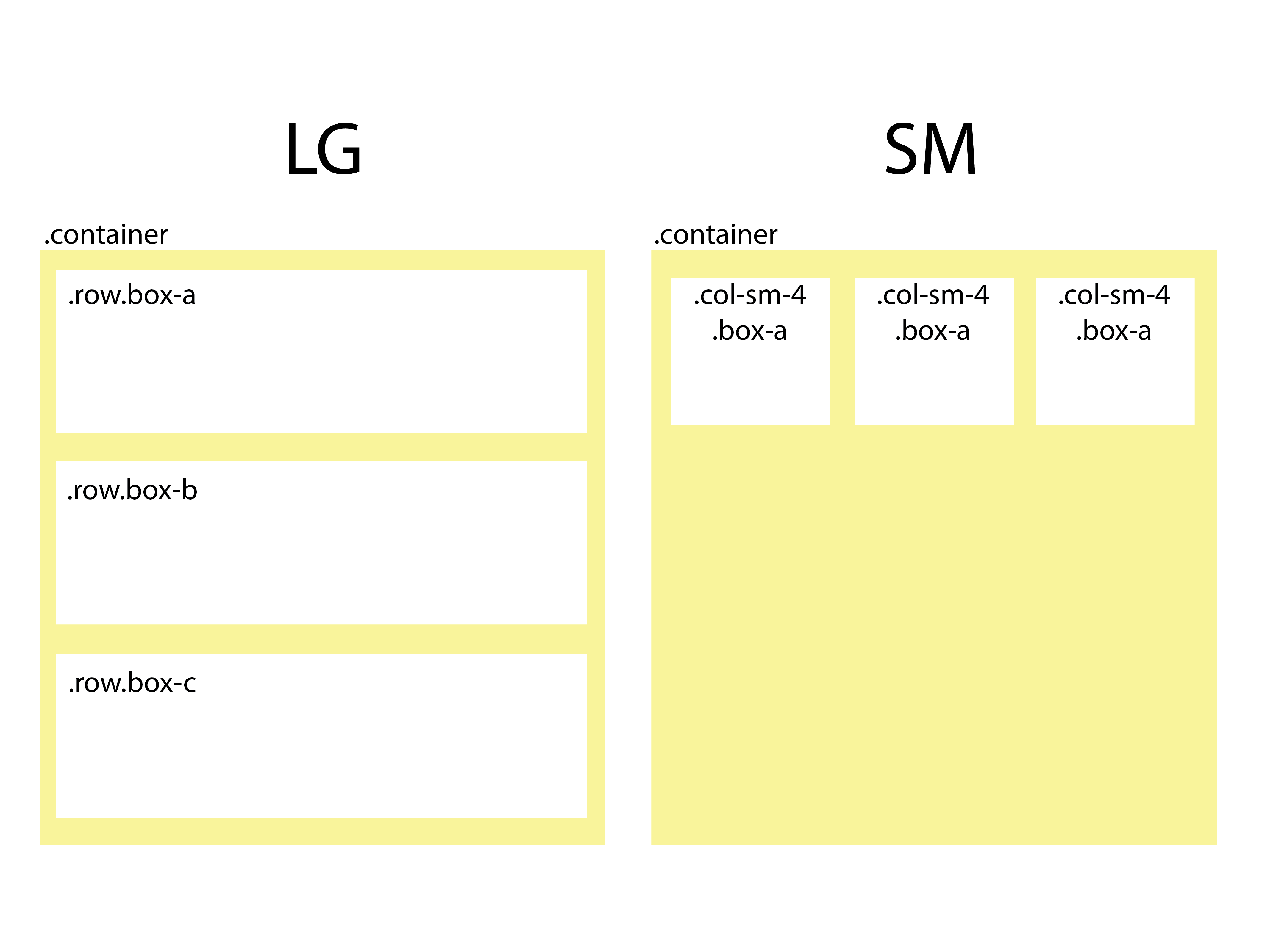 PS:在引导过程中,如果一个DIV有一个类visible-lg,那么div只会在LG大小下显示,所以添加hidden-sm类是不必要的:.box-a.row.visible-lg.hidden-sm => .box-a.row.visible-lg。