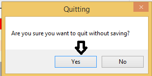 if (MessageBox.Show("Are you sure you want to quit without saving?", "Quitting",