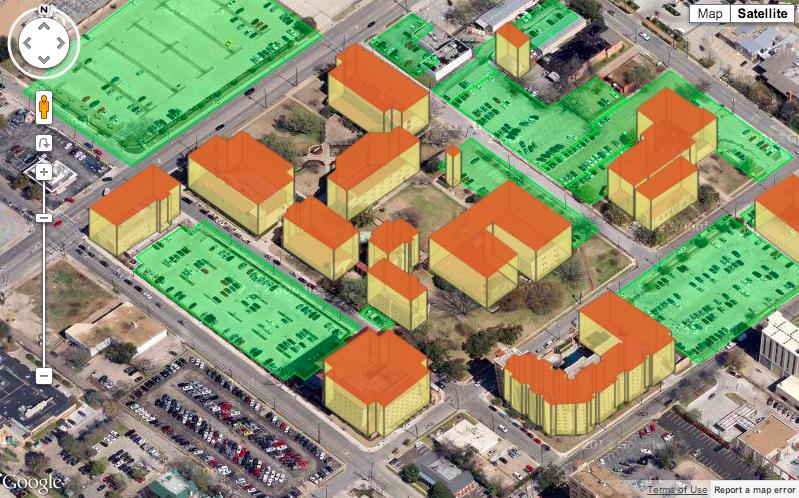 我发现这篇文章解释了如何添加三维建筑,但它是“假的”,欺骗与纬度,以获得一些高度效应: