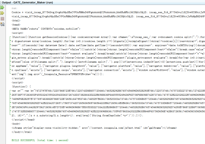 }正如我所观察到的,用户代理和其他属性似乎并不重要。您现在可以调用getIncapsulaCookie(String url)一次或任何时候,您需要一个新的cookie,以获得cookie和readUrl(String url, String incapsulaCookie) 多次请求页面,直到cookie到期。其结果是完整的 HTML页面,如下面的部分图像所示: