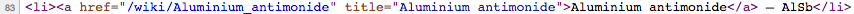 我想要的是标题:“锑酸铝”和化学式:"AlSb“。