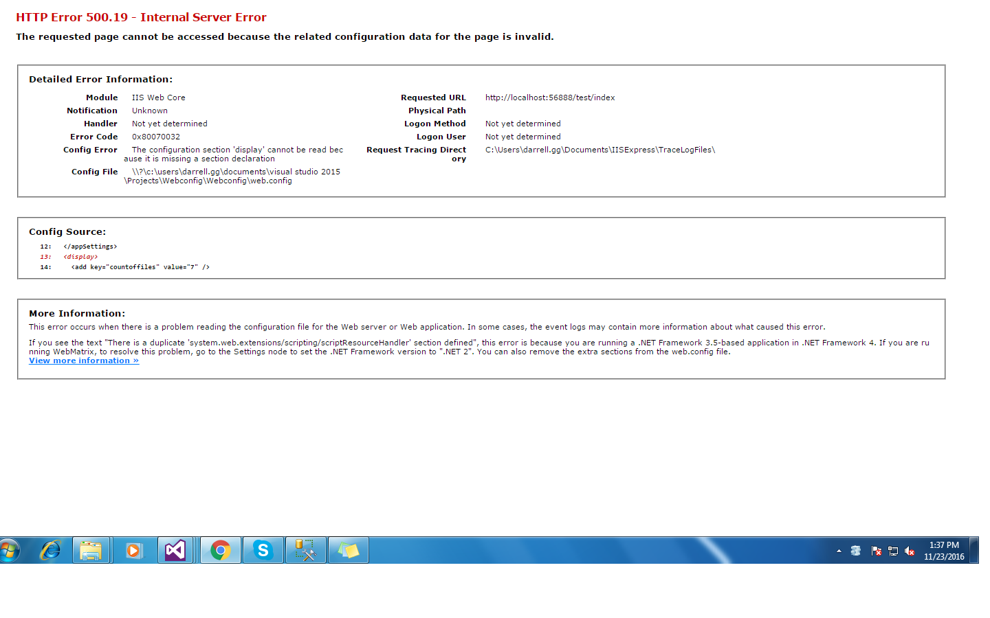 <display>标记添加到MVC application.Any线索中的web.config中时,发现了这个错误:为什么??