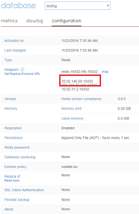 您所需要的只是将应用程序连接到UI中提供的端点。如果带有主Redis的节点出现故障,RLEC将自动提升从节点并将您的应用程序请求重定向到新的主节点。