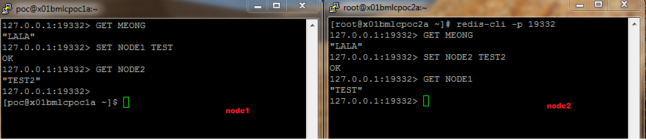 对于来自两个节点的本地工作的redis-cli -p 19332,正如我的同事@ItamarHaber所提到的,您正在通过代理与Redis资源进行通信,所有请求都由您的主Redis进程处理。