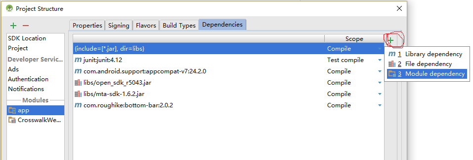 将xwalk_core_library_java.jar从人行横道库复制到app/ libs /在android项目中,然后对文件进行写入单击,选择“添加为库”