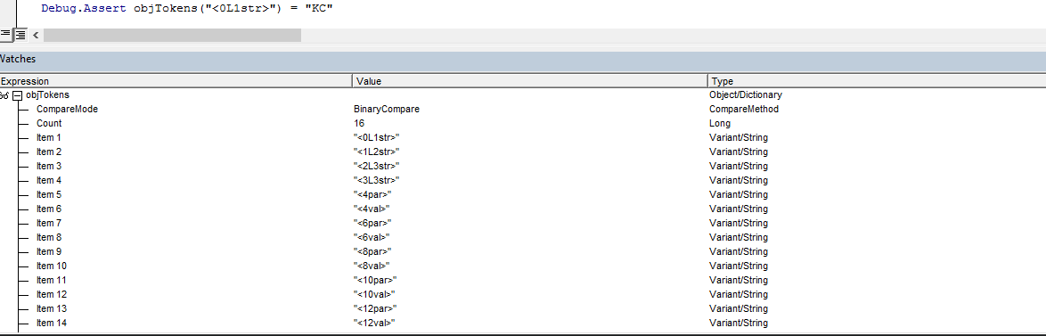 Set objTokens = CreateObject("Scripting.Dictionary")