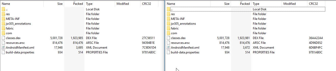 但是,这个问题在下一次更新中得到了解决。我也有同样的md5。但是,随着另一次更新,我得到了不同的md5。所以,我又检查了一遍,没有任何文件大小的差别。只有md5。我测试了两个apks,都很好。没有问题。