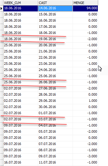 我对Firebird中的一些脚本有问题。我想把我的约会安排在周六开始的周类中,但遗憾的是,最后一天的位置不对。