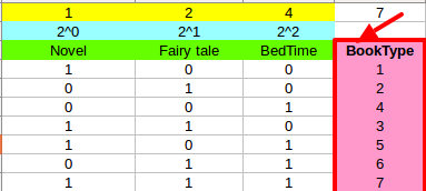 以下是顾客在图书馆里阅读的不同种类的书籍的清单。这些值以2的幂存储在一个名为bookType的列中。
