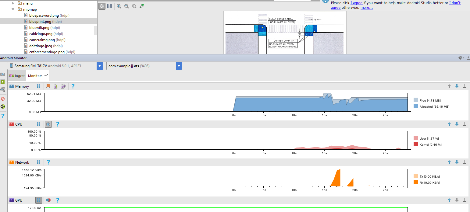即使在空闲的情况下,分配的内存也几乎被完全利用了。logcat显示了大量的外部活动,这与我的应用程序无关,而是一些其他操作系统进程。