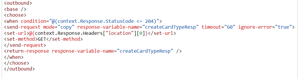 此外,您还可以使用“发送请求”策略,该策略将调用另一个API端点并将结果存储在声明的变量中。这就是对我起作用的东西。