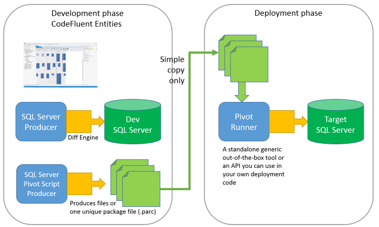 要在生产环境中升级数据库,应该使用SQL Server数据透视脚本生成器。数据透视脚本生成器生成一个XML文件(或zip文件),该文件包含数据库的表、存储过程、函数等列表。数据透视运行程序读取此文件,并创建或升级数据库,使其符合XML文件中的状态描述。由于它直接生成和执行SQL语句(而不生成脚本文件),因此PivotRunner所做的操作少于差异脚本。