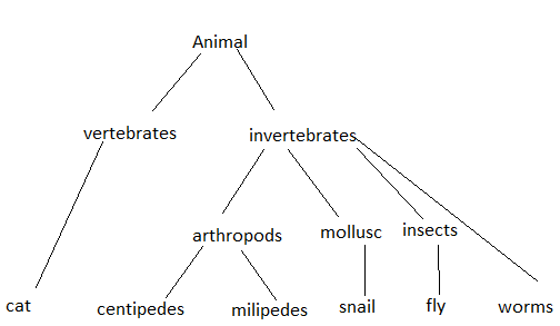 4 name cat,centipede,milipede,snail,flay,worm cat vertebrates
