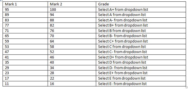 因此,我需要添加两个值来标记范围文本框,并从下拉列表中选择年级,然后单击add按钮。我需要这样做15次。
