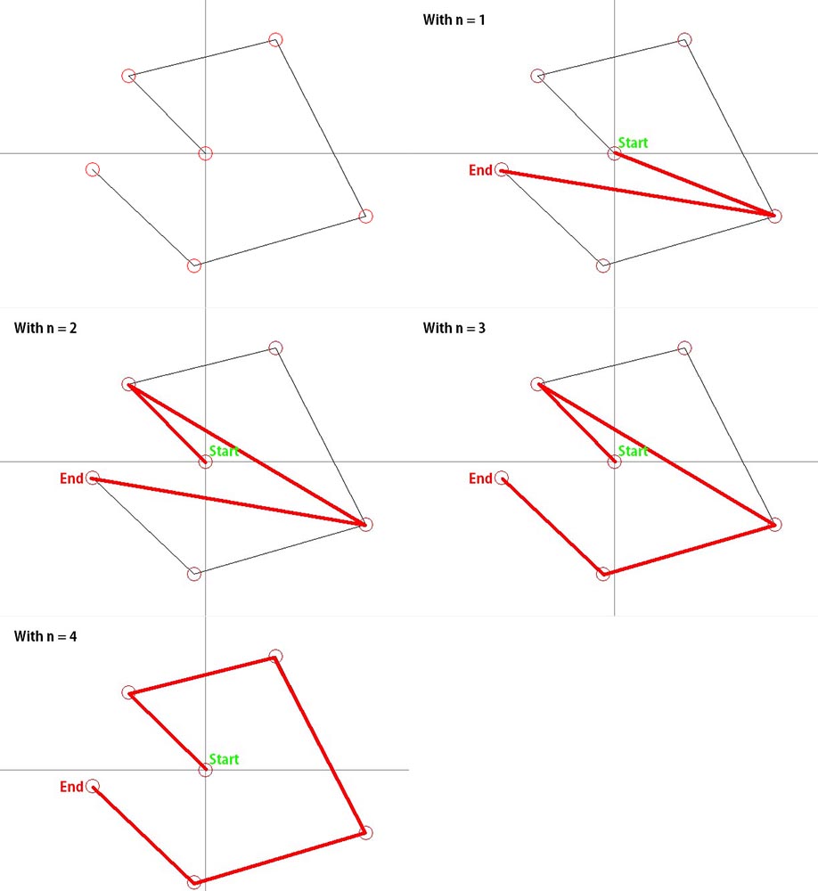 对每一列中的每一个中间点执行此操作,直到D[n - 1][...]。最后一步是再次对D[n][endPoint]执行此过程,严格地说,它不需要位于D数组中(因为您只对一个值感兴趣,而不是整个列)。