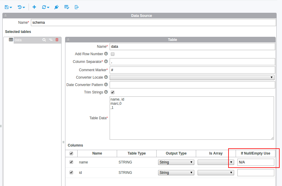 可以将空字符串转换为表定义中的其他内容,如下所示:
