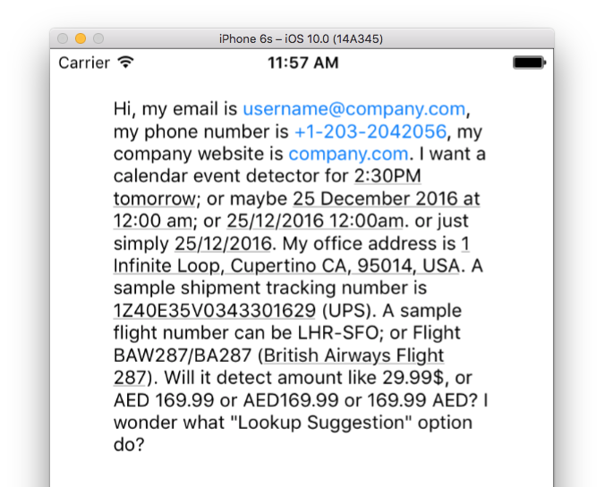 UITextView提供了一个非常有用的数据检测器功能,它支持: