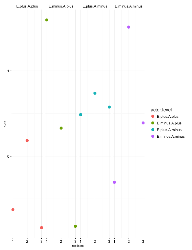 main.plot <- ggplot(main.df,aes(x=replicate,y=cpm,color=factor.level))+geom_point(size=3)+