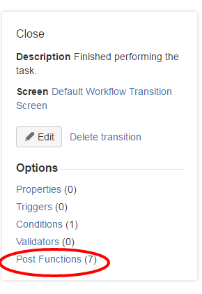 Admin > Issues > Workflow并编辑有问题的工作流Post Function