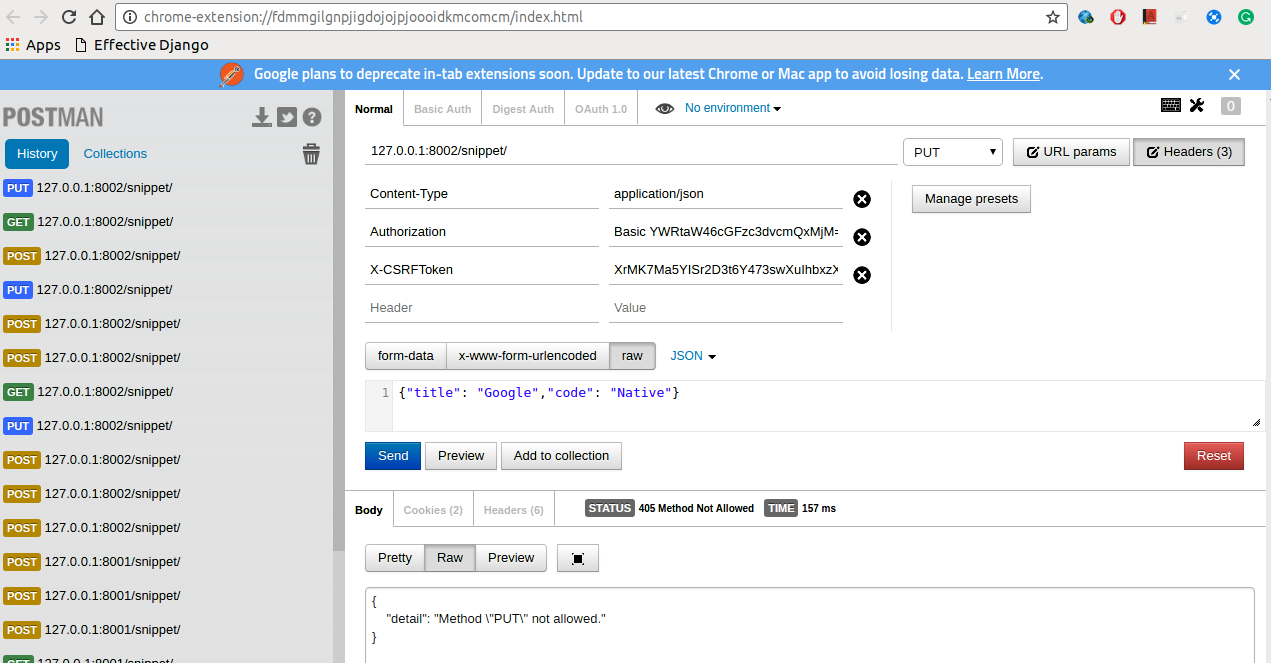 我无法在Django rest框架中执行 PUT 操作,我能够获得、发布、删除操作。