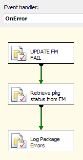 在我的例子中(SSIS 2008),我在包级别中创建了一个OnError事件,因此包中发生的每一个错误都将被记录下来,不管它们发生在哪里。当我采用这种方法时,所有三个错误都应该记录在我的错误表中。也就是说。
