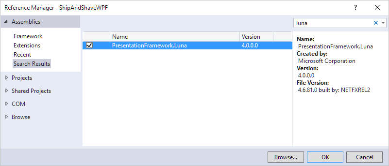 我不得不添加PresentationFramework.Luna (Microsoft )。