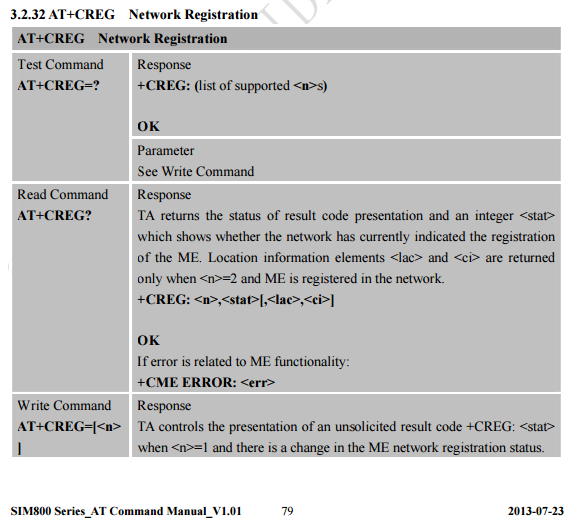 我想知道是否有任何简单的方法使用AT命令来查找SIM800的网络注册状态?
