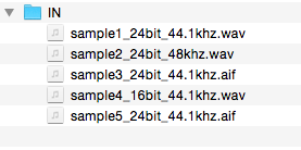 我正在尝试使用python脚本转换一些音频文件。源文件夹包含.wav和.aiff音频文件,具有不同的比特率和采样率。