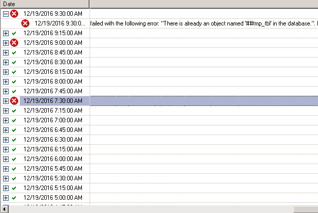 DROP TABLE ##tmp_tbl但这一切只是扼杀了我创建的新测试作业,它现在平均运行45分钟,几乎每次都失败(也许我做错了?)我进行了更改并点击了execute,是否应该先禁用该作业?)