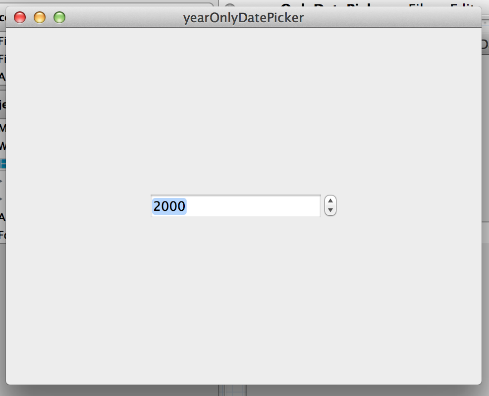 可以通过配置一年月选择器和子类NSDatePicker来防止它创建月份和分隔符字段,从而获得仅为一年的NSDatePickerCell: