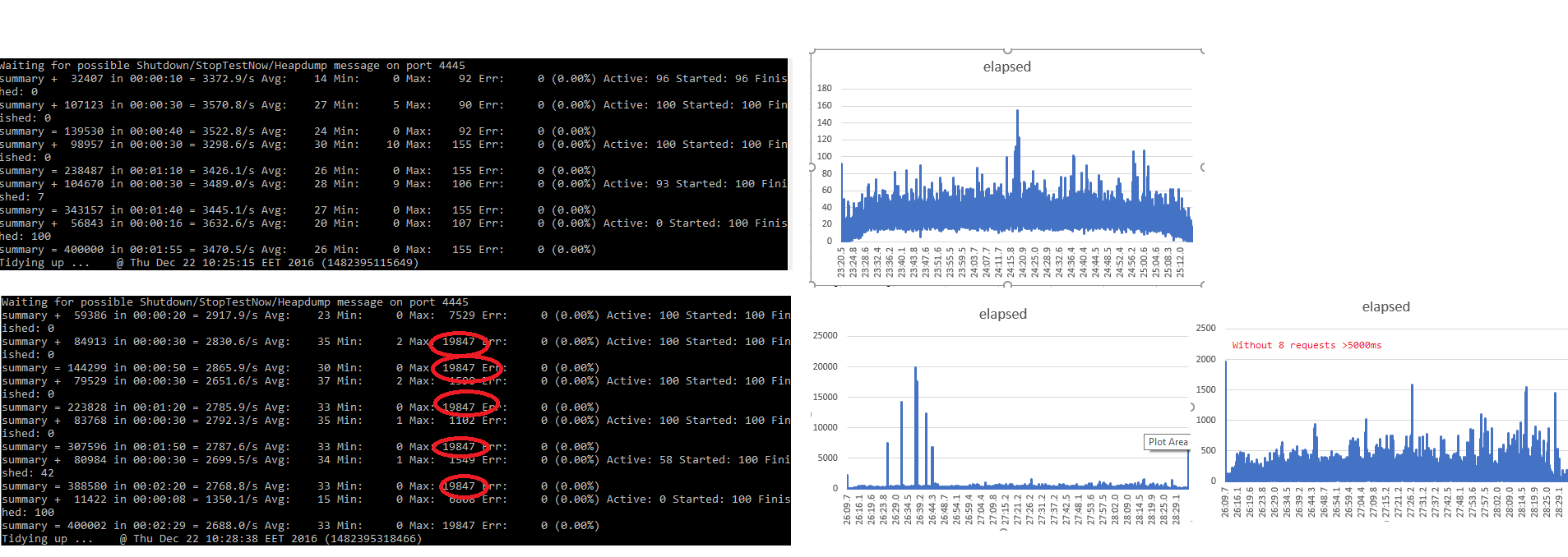 我使用JMeter来加载我的WebApi。每个用户100用户+ 4000循环。